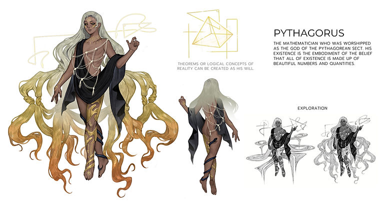Central Fire sensed that something was off, but before she could figure out what it was, it was too late. A familiar power shot straight toward her. The man standing before her was none other than Pythagoras, the bearer of the light of intelligence—the luminary who inspired faith in a seemingly hopeless world. He pinned Central Fire to the stone pillar in the Counter Earth, transforming her into the source of holy energy for his new world. Pythagoras knew well that his power alone was insufficient to create the perfect world he envisioned—a perfect world where everything went by his theorem only. That’s why he sought out Central Fire, the origin of power. She wasn't just energy; SHE was the spirit of the universe, the mother who births everything. However, according to Pythagoras, “Everything has a rhythm, a pattern, and a hidden reason.” She was just another element in his grand design—merely fuel to ignite his light.
